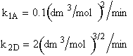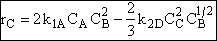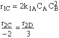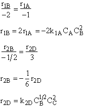 These net rates of reaction are now coupled with the appropriate mole balance of A, B, C, and D and solved using a numerical software package.