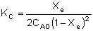 | Substituting known values (CA0 = 0.2 mol/dm3 and KC = 100 dm3/mol): |