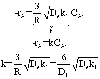 We see that for the same total weight of catalyst, the smaller diameter particles have a greater external surface area, and hence a grater rate constant per mass of catalyst.