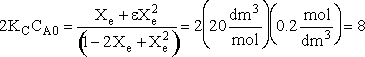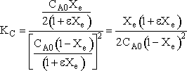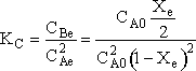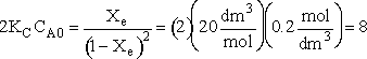 Consider the following elementary reaction with KC and = 20 dm3/mol and CA0 = 0.2 mol/dm3. Pure A fed. Calculate the equilibrium conversion, Xe, for both a batch reactor and a flow reactor.