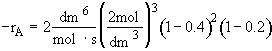 takes place isothermally in a flow reactor with no pressure drop. The feed is equal molar in A and B. Write the rate of reaction, -rA, solely as a function of the conversion, X [i.e. -rA = f(X)].