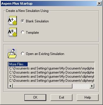 After invoking Aspen Plus™ , it will present you the Aspen Plus Startup dialog. There are three choices for starting a new Aspen Plus™ session. You can open an existing simulation, start from a template or create your work from scratch using a blank simulation. Let’s select the option with blank simulation and click ok.