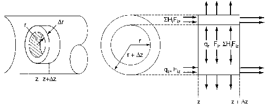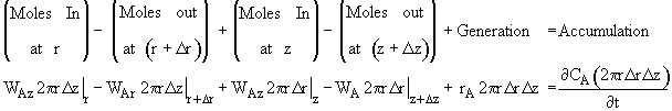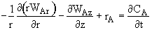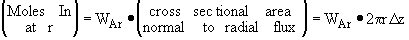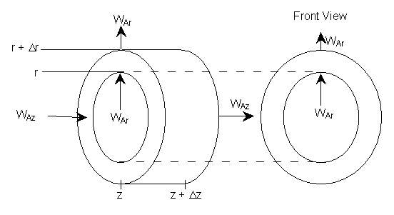 where Ur is the molar average velocity in the radial direction. A mole balance on a cylindrical system volume of length Dz and thickness Dr gives