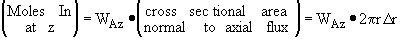 In order to derive the governing equations we need to add a couple of definitions. The first is the molar flux of Species A, WA mol/m2•s. The molar flux has two components, the radial component WAr, and the axial component, WAz. The molar flow rates are just the product of the molar fluxes and the cross sectional areas normal to their direction of flow Acz. E.g. for species A