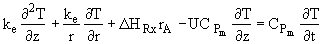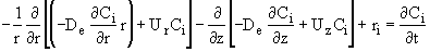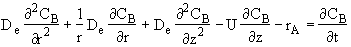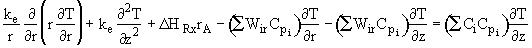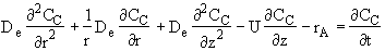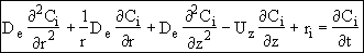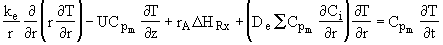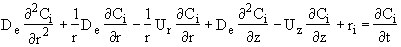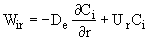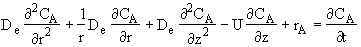 where De is the effective diffusivity m2/s, and Uz is the axial molar average velocity, (m/s). Similarly the flux in the radial direction is