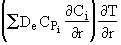 Recognizing the term in brackets is related to Eqn (8-X) and is just the rate of disappearance of species i, -ri. We have