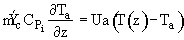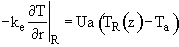 (b) At the tube wall r = R, the flux to the wall on the reaction side equals the convective flux out of the reactor into the shell side of the heat exchanger.