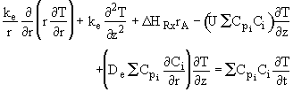 In the previous sections we have assumed that there were no radial variations in velocity, concentration, temperature or reaction rate in the tubular and packed bed reactors. As a result the axial profiles could be determined using an ordinary differential equation (ODE) solver. In this section we will consider the case where we have both axial and radial variations in the system variables in which case will require a partial differential (PDE) solver. A PDE solver such as COMSOL Multiphysics, will allow us to solve tubular reactor problems for both the axial and radial profiles.