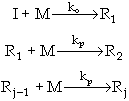 Case 1 ko is essentially (i.e., ko >> kp) infinite. Io is reacted immediately upon mixing with monomer to form R10