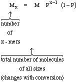 For CP = 10?4 and 80% conversion, there will be 1.0 branches per 104 monomer units polymerized. There is one branch for every 4,000 to 10,000 monomer units and for a polymer molecular weight of 105 ? 106 this corresponds to 1 polymer chain in 10 containing a branch.