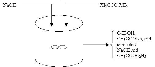 Sodium hydroxide and ethyl acetate are continuously fed to a rapidly stirred tank in which they react to form sodium acetate and ethanol:
