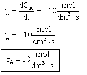 rA = -10 moles/dm3*min
