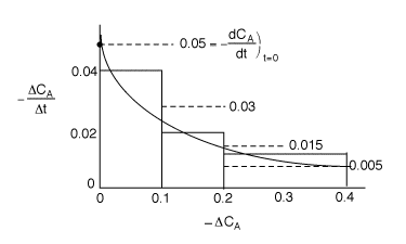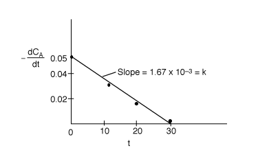 versus CA on log-log paper to determine the reaction order. The correct plot on log-log is as follows.