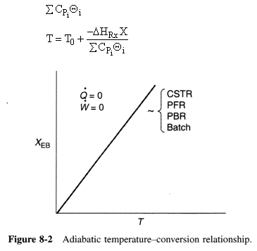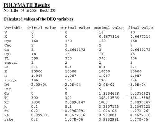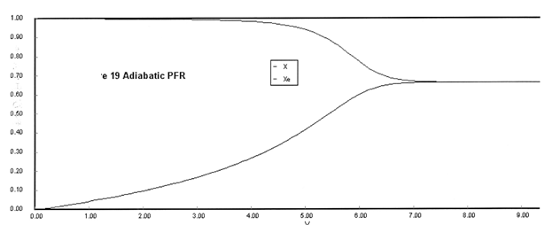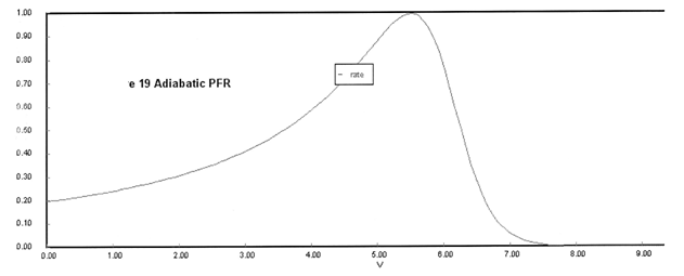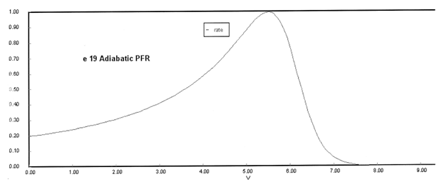 (a) Plot X, Xe, T and Rate (Rate A = –rA) as a function of V for adiabatic operation. Explain why the curves look the way they do.