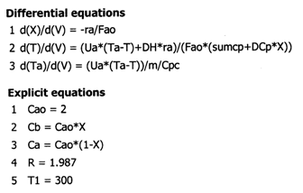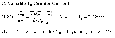 Equations (1) through (16) are the same as those in Example 8.2. We now add Equation (17C) to replace Ta = 300 and also mf = 100 gmol/min and CPC = 20 cal/mol•K