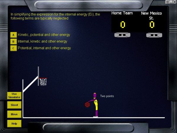 The game can also be run in an interactive mode, in which the scenario takes the student to a basketball tournament. They have the choice of two-point and three-point questions: