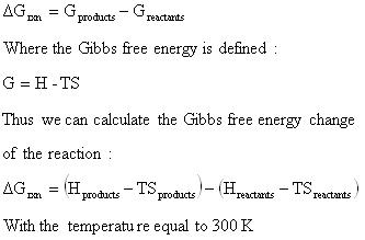 The Gibbs free energy is calculated:= 23.503 kcal/molEquilibrium Constant