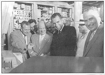 The "Kitchen Debate" of 1959 was one of a series of discussions between the two leaders, one of which took place at the U.S. Trade and Cultural Fair in a model kitchen exhibit. The exhibit shown in Moscow in 1959 by the United States included RCA color television and Ampex videotape. Nixon met with Khrushchev and opened the American exhibit. In one of the dialogues between the leaders, Nixon, "recommended [the color televsion and videotape] as ideal instruments for an exchange of ideas" (Barnouw).In 1958, when Khrushchev became the Russian leader, he approved a program which would allow the U.S. and Russia to share various aspects of the cultures with each other. The U.S. and Russia were currently involved in the space race and tensions were high. Both Khrushchev and Nixon were thinking of the influence they could have on the others country by appealing to them through the televised event. "The world was entering a period when the planning of television spectaculars was becoming a central activity of rulers" (Barnouw). The two leaders were influenced by the presence of the video cameras, both wanting represent their country well. Khrushchev toured the U.S. soon after and his visit was also televised. Another important aspect of the "Kitchen Debate" is that the newsreel which contained footage of a news conference between Nixon and Khruschev was censored by the U.S. government. This was the first occurrence of government censor in the histroy of the newsreel.