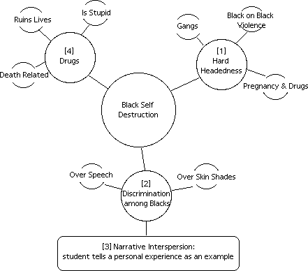 [2] Then there's discrimination between Blacks because of lighter and darker shades. Like when people call me 'white girl' before, of course, I got this tan. I'm sort of glad that I'm not that light anymore. But, I'm still teased by the way I talk because it's too proper. But that's just the way I talk. One night I was talking [3] on the phone to____, my boyfriend, when some of his friends started to talking to me on the phone. Whenever they'd talk to me, they'd assume I was white. The first time they did that, it really made me mad. But I don't get mad anymore. I'm used to it. It gets me mad when they think I think I'm better than them. But I don't think that.