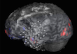 Language activation - overt speech fMRI - A cortical surface activation map of an overt speech processed using our MSV motion correction. The EPI time series was acquired without physical head-restrain. It is particularly important to correct individual slice in fMRI time series of verbalized speech since the head motion associated with articulation is unavoidable and the magnitude is much larger than the range of motion that can be handled by volume registration algorithms or simple smoothing or interpolation.