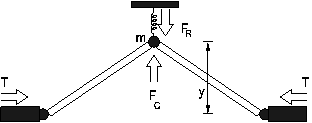 The engineers that have been working on this problem have suggested that Fr may be modeled as a nonlinear spring force, Fr = a(y - y0)2 + b(y-y0)3 + c(y-y0), where y0 is the initial position of the mass (which may be a measure of initial imperfections in the system) and a, b, and c are constants characterizing the ``spring.'' The compressional force Fc is given approximately by Fc = 2 d y, where d is again a constant---in this case, measuring the magnitude of the forces T.