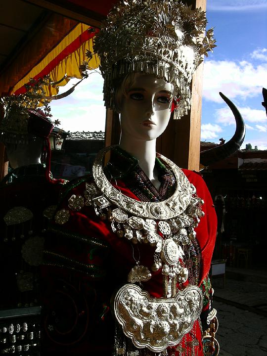 Western style mannequin wearing traditional costume of the minority Miao people.