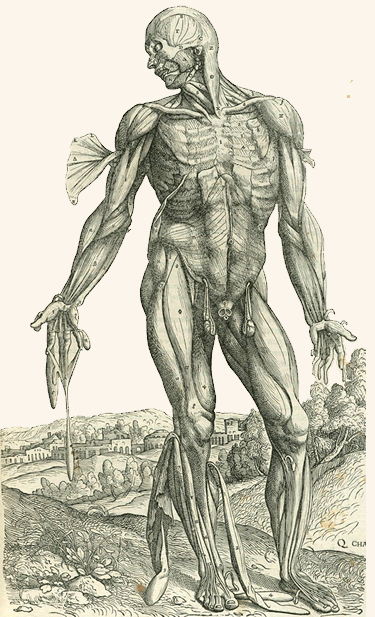 While many commentators on the Enlightenment designate Isaac Newton’s Philosophiæ Naturalis Principia Mathematica (“Mathematical Principles of Natural Philosophy”) as the corner stone of empirical, observation-based natural philosophy, at least some credit should be given to the influence of 16th century anatomists who criticized Galen’s anatomical suppositions and exhaustively studied human body. Thus, one might argue that Enlightenment anatomy truly began in the 16th century through the work of Andreas Vesalius, a Belgian-born anatomist trained at Padua (where he would later train the next generation). Vesalius represents the spirit of Enlightenment critique in that he believed an anatomist must have first-hand knowledge of the human body, a break from over a millenium of anatomical practice.