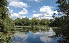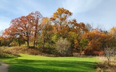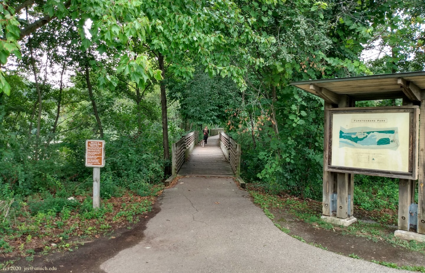Furstenberg Nature Area is a 38-acre park containing wetlands, woodlands, prairie, and oak savannah. It is located on Fuller Road just west of Gallup Park. A half-mile paved trail loops through the park, and a granular trail goes through the prairie and woods, connecting to 1/4 mile of wetland boardwalk. An interpretive brochure leads the visitor through a series of numbered posts explaining the natural ecosystems.