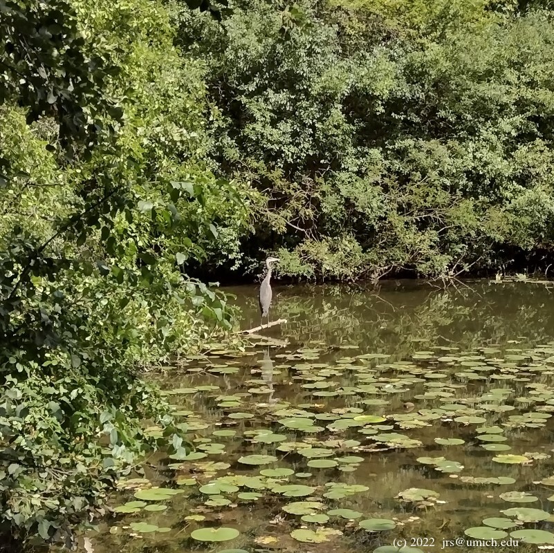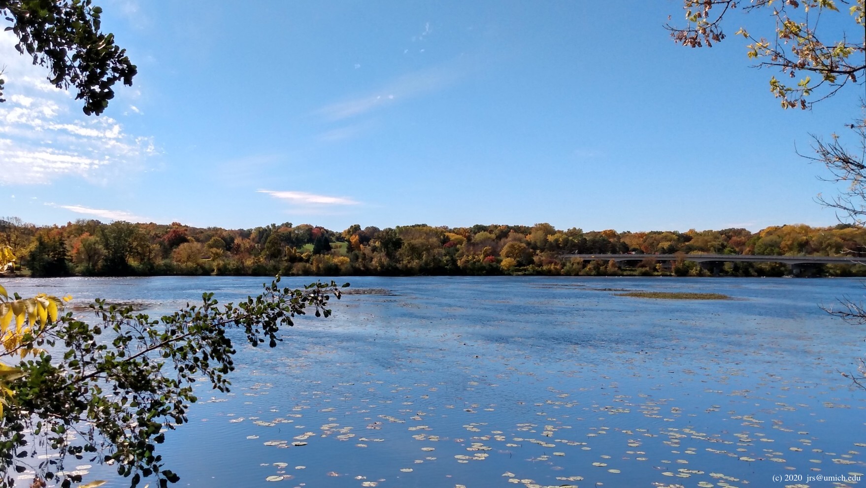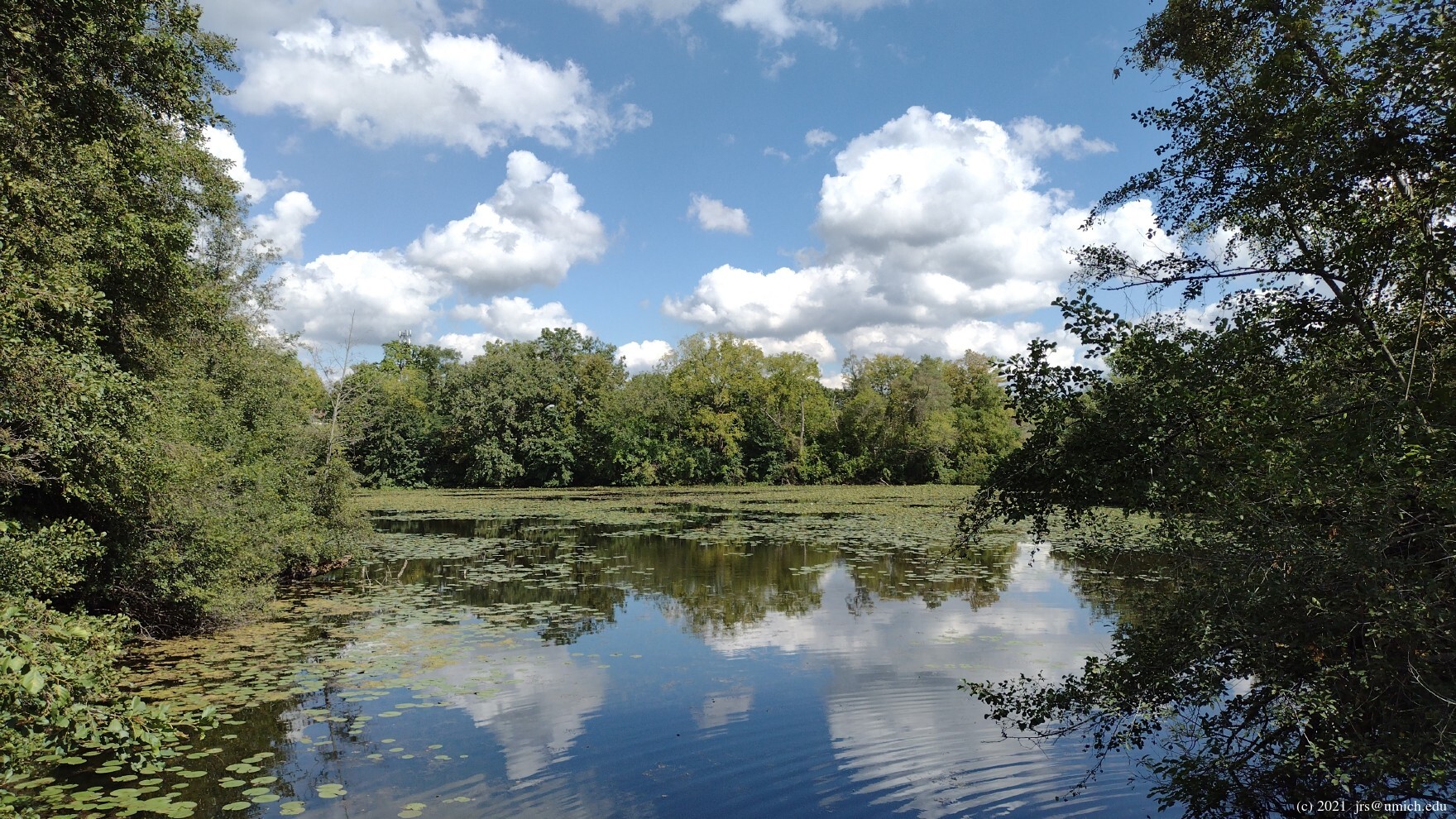 A second option after crossing the bridge is to bear left and explore the Furstenberg Nature Area. What you will find there is a mix of wetlands and woods on a finger of land that juts out and curls around a lagoon off of the Huron River. The trail is mostly unpaved aside from some boardwalks in marshy areas. A round trip from the entrance at Gallup Park to the far northwest end of the preserve is about 1.35 miles.
