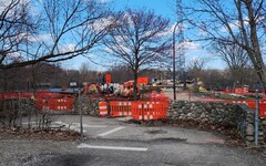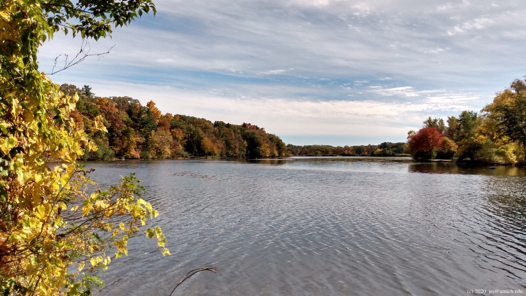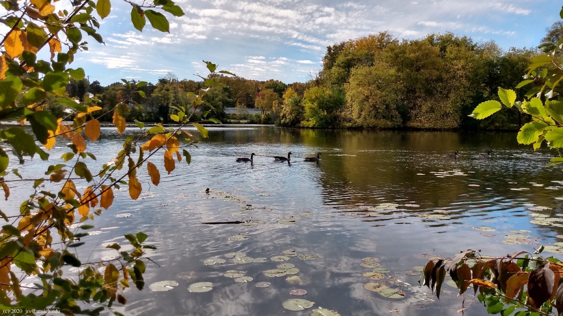 available on both sides of Huron Parkway where it crosses Geddes Pond.