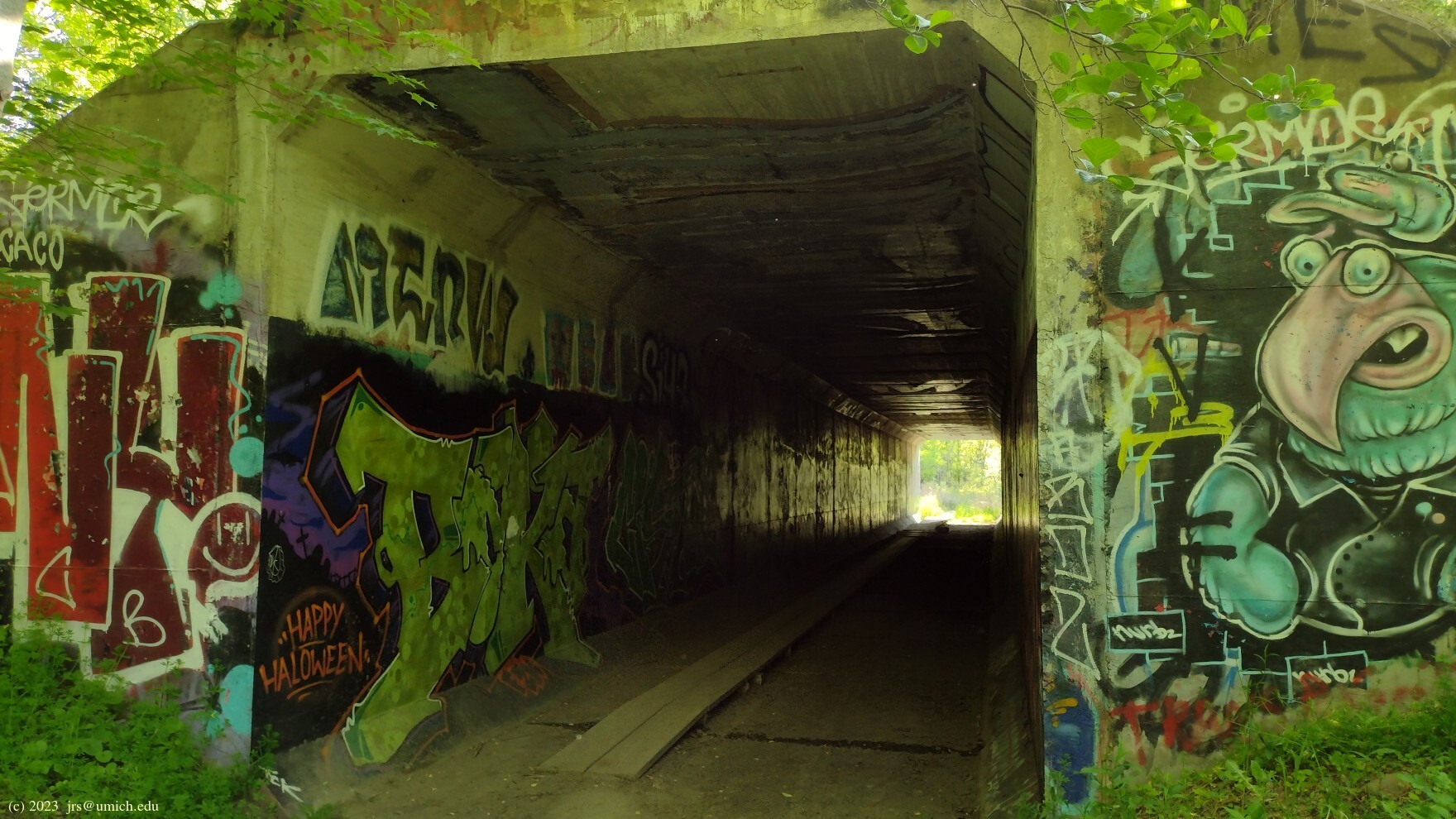 The trails west of M-14 will lead you toward the tunnel. Once you pass
