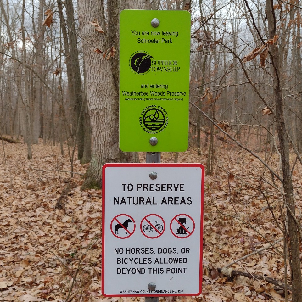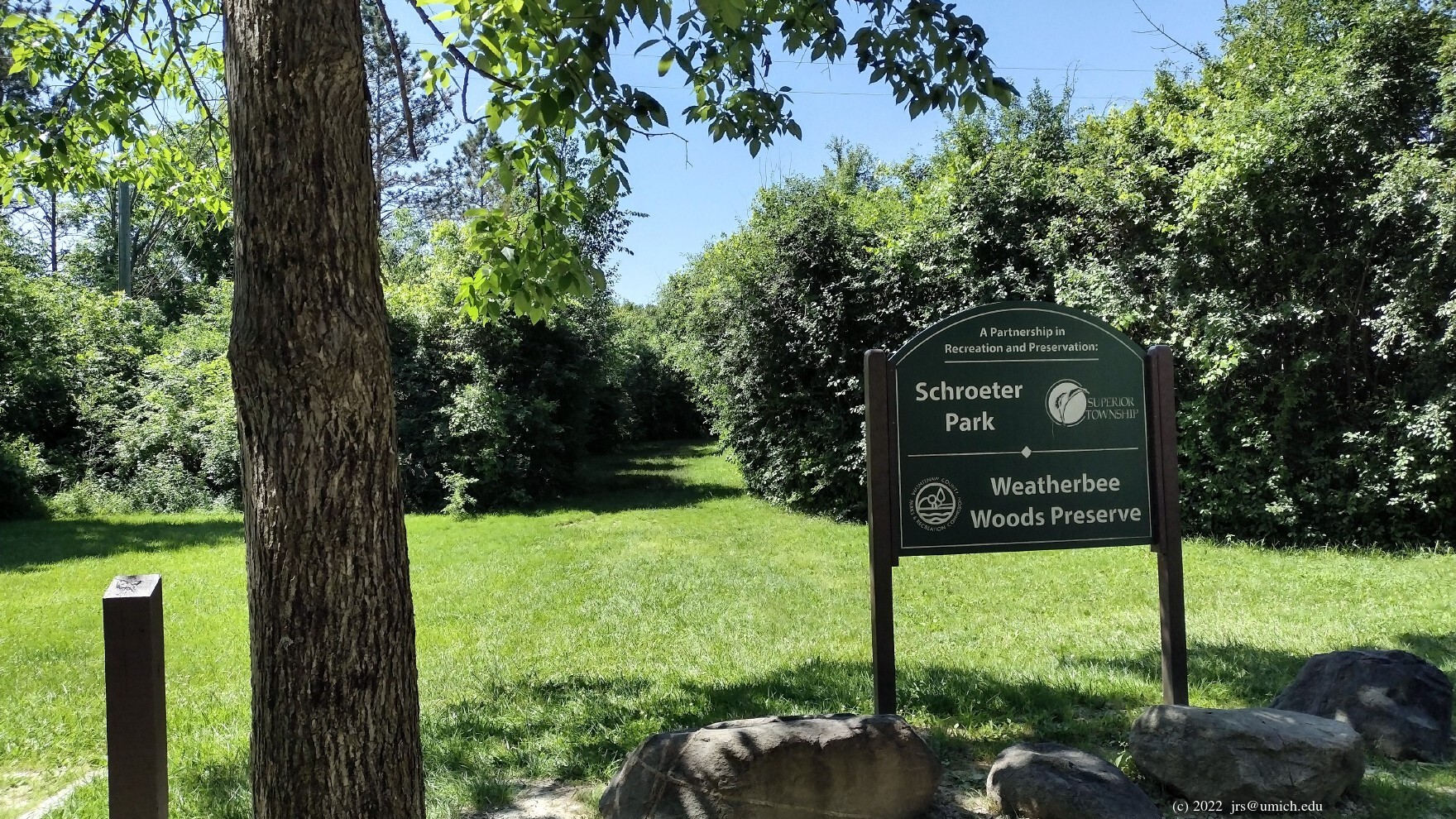 The northern portion of the [Weatherbee Woods Preserve] is mainly wooded and adjoins Schroeter Park, a facility owned by Superior Township. Its high quality landscape contains significant plant diversity, including upland woodlots and a hardwood swamp. A perennial stream cuts through the steeply sloped topography.
