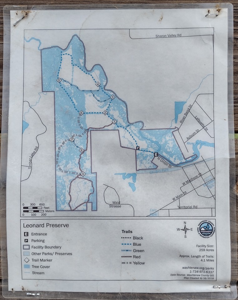 Excerpt from the website: Leonard Preserve is the largest natural area in the County's system of NAPP preserves and protects nearly one mile of River Raisin shoreline. Located just northwest of the Village of Manchester, this rich and diverse landscape includes rolling hills, woodlands, wetlands, prairie and former pasture land. The diversity of habitats makes for very good wildlife viewing. Wood ducks, coyotes, blue racers, and Blanding’s turtles are some of the animals you may see at this preserve.