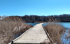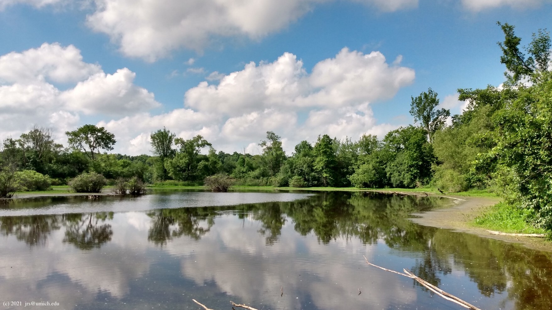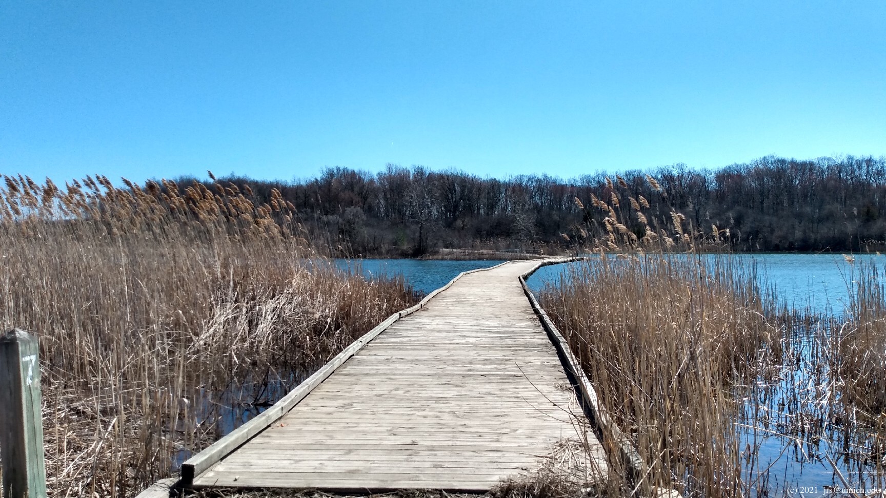 In theory, there is a long boardwalk that crosses Turtle Rock Pond. However, during the Summer of 2020, it was suitable only for amphibians (above left). By the following spring, it appeared to be functional again although still closed to the public (above center). In retrospect, it is possible that no human efforts were involved -- perhaps the water level in the pond had simply dropped. In any case, by May of 2022, the boardwalk had reverted to a submerged state. By August 2022, something more drastic was apparent -- removal of the boardwalk (above right).