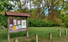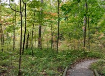 Here you will encounter varying types of woodlands—-oak and hickory trees are found in locations with drier soils and the wetter woods are dominated by sugar maple and beech trees. A wetland system is located in the eastern portion of the preserve where you will find a buttonbush swamp and wetland plants such as pawpaw trees, spicebush, and bladdernut. Spring wildflowers are abundant in the preserve, and the wooded habitat is home to some uncommon birds including barred owls and pileated woodpeckers.