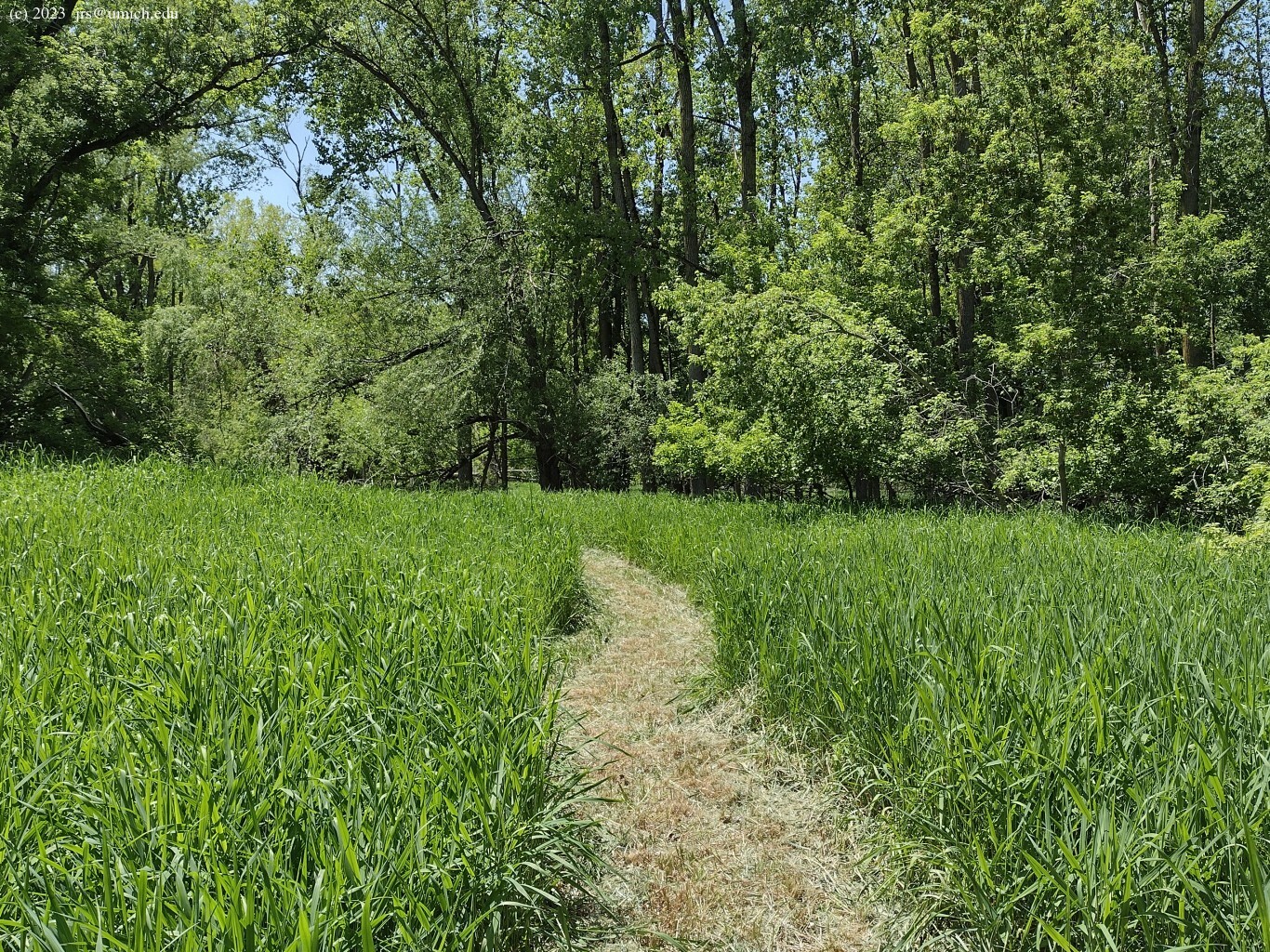 Directions: Take Jackson Road west from Ann Arbor, turning right (north) onto Baker Road. Or take the Baker Road exit from westbound I-94 and turn right. The small parking lot and the trailheads for the northern and southern halves of the preserve are on the left (west) side of Baker about 1.25 miles north of I-94.
