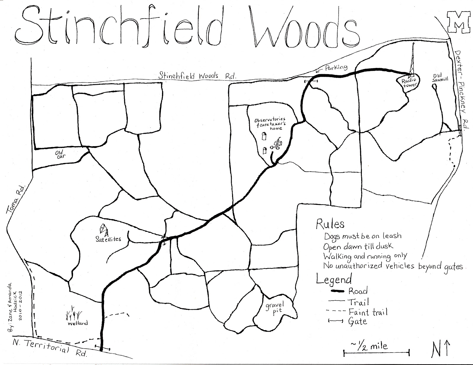 Stinchfield Woods is a large University of Michigan property sandwiched between the Pinckney State Recreation Area and Hudson Mills Metropark. While it is primarily a site for university research and education, it has an extensive network of trails open to the public that make it a paradise for hikers.