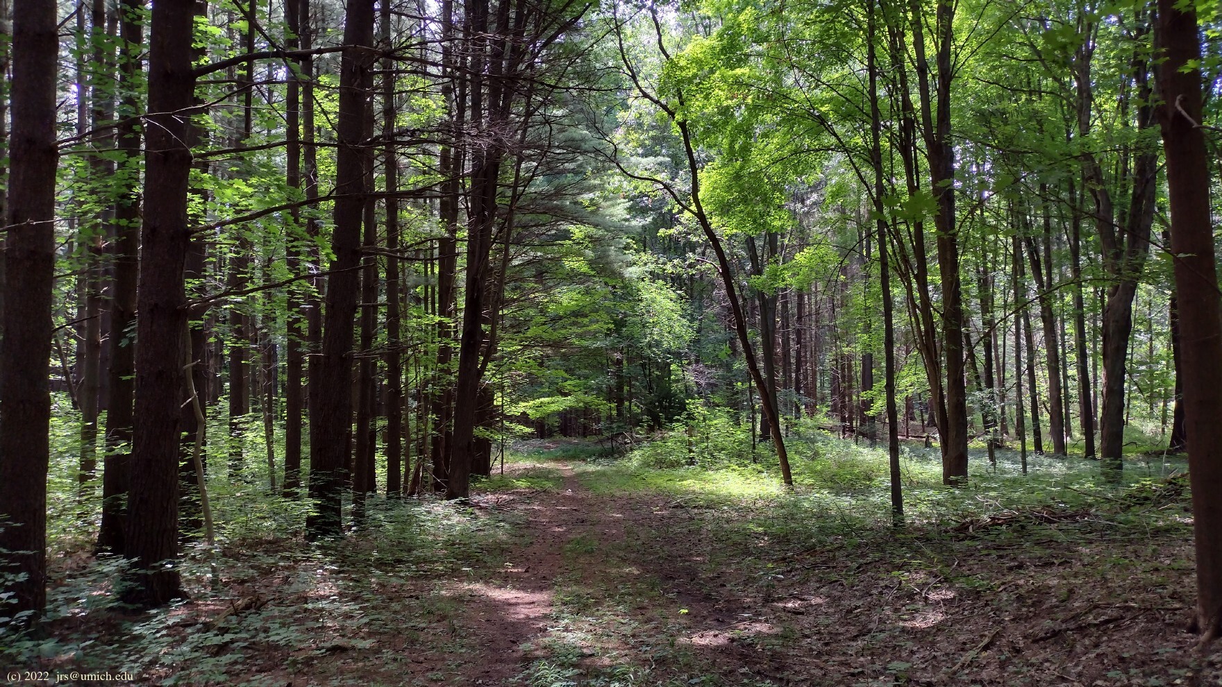 Stinchfield Woods ... is a larger area where training in forest and sustainable ecosystem management takes place. The land was acquired in piecemeal fashion beginning in 1925. Now it comprises 777 acres of rolling hills reforested with hardwoods and evergreens. It serves as a field research area for demonstration of forest and sustainable ecosystem management for SEAS faculty and students.