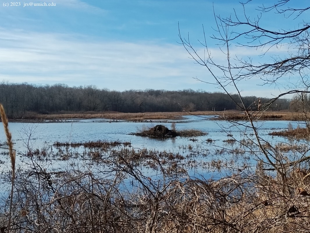 Waterfowl are often busy here and in the ponds north of the river