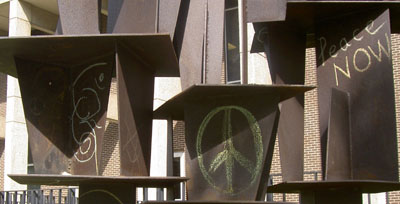 The May 4 memorial, called ‘the 7 percent solution’ because only 7 percent of the planned design was actually built. The school held a contest to design a memorial, but the first winner turned out to be a Canadian. So they went with the design of the runner up, but only partially completed it.