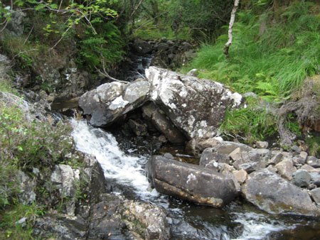 The idea was to go straight down the hill to reach the easy trail that we entered on. Of course such a plan is not so easy on the Isle of Skye, and we may not have fully appreciated the beauty of our surroundings as we trampled around streams, bogs, and rock formations.