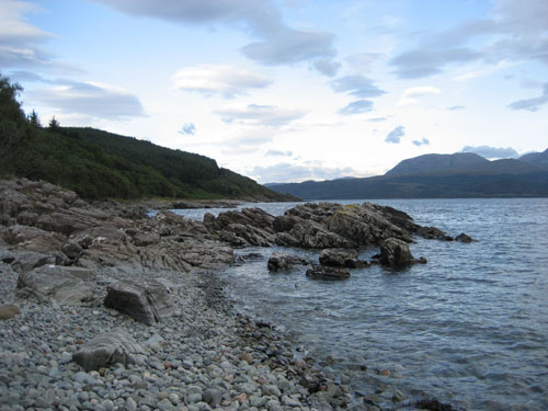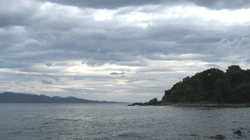 As the sun was getting low in the sky, we saw the rocky outcropping that made the beach path impassible.