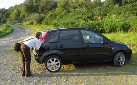 The sun came back out and we made our way back to the trailhead. Heather rejoices upon reaching our vehicle.