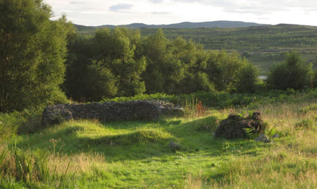 The remains of a crofters house. After the failed Jacobite uprising of 1745, clan chiefs were forbidden to have their own armies, so they had less of a need for the large tenantry which was previously a military asset. Industrialization increased the demand for raw materials such as wool, and local nobles started kicking out the tenant farmers (crofters) and started raising sheep. The forcible evictions of the Highland Clearances led to massive immigration to North America and left rural regions largely uninhabited as they remain today.