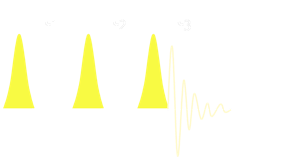 Multidimensional spectroscopy is a nonlinear optical technique where three field interactions (we don’t want to talk about photons for now), conspire to induce a third-order nonlinear polarization in the material. The polarization radiates an electric field, which we detect using an interferometry technique. The information in the signal field is the three-point time correlation function of the dipole operator. The three time intervals may be converted to frequencies by Fourier transformation (or partial transformations), and the resulting amplitude map is plotted in two (or more) dimensions.