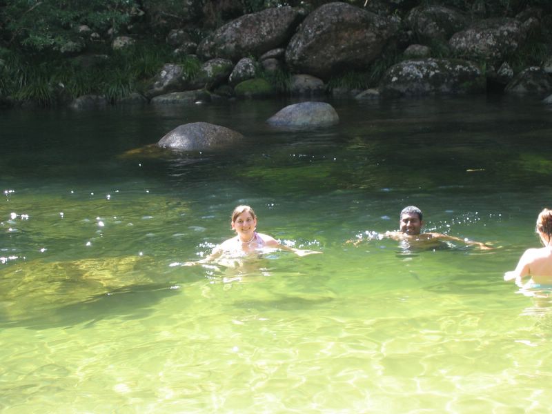 Port Douglas-Mossman -- Clement and Amanda swimming in the freezing Mossman river