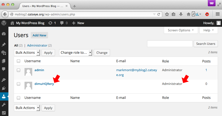 As you can see, the user created by the exploit is an administrator can can do anything the owner of the blog can do via WordPress.