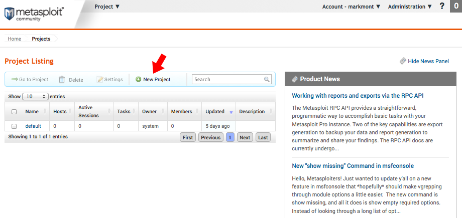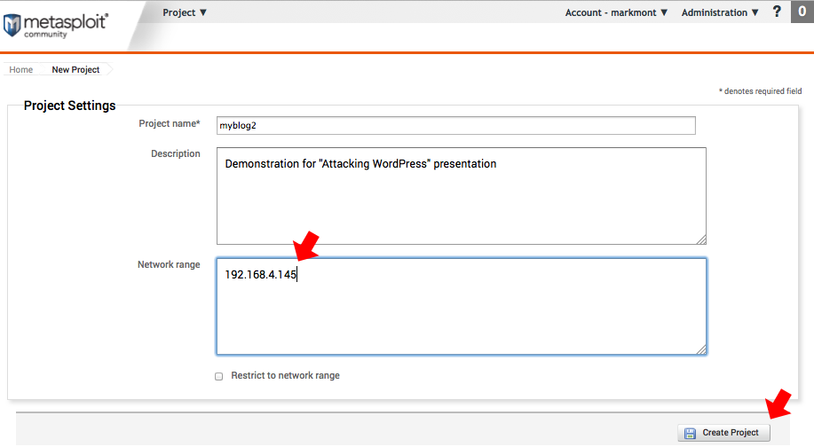 Just enter a name for the project and either the networks or IP addresses you'll be testing and then click the Create Project button.