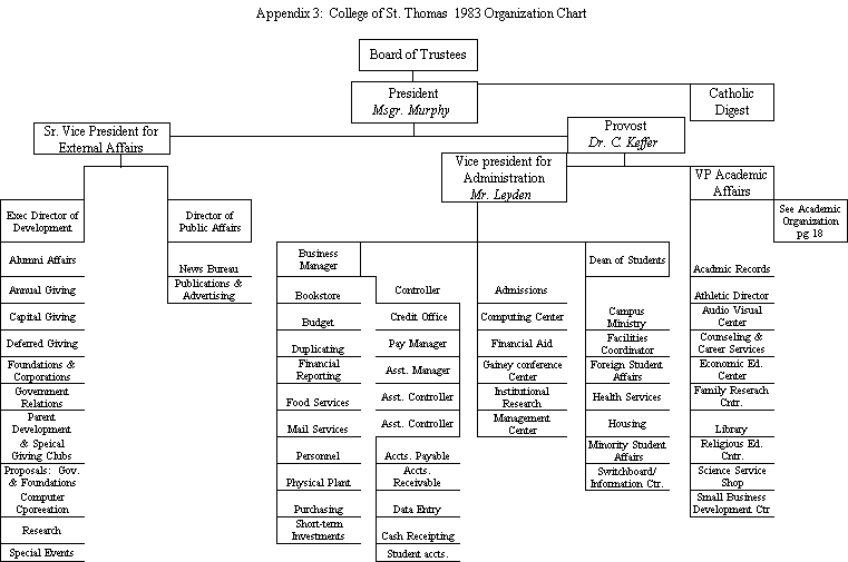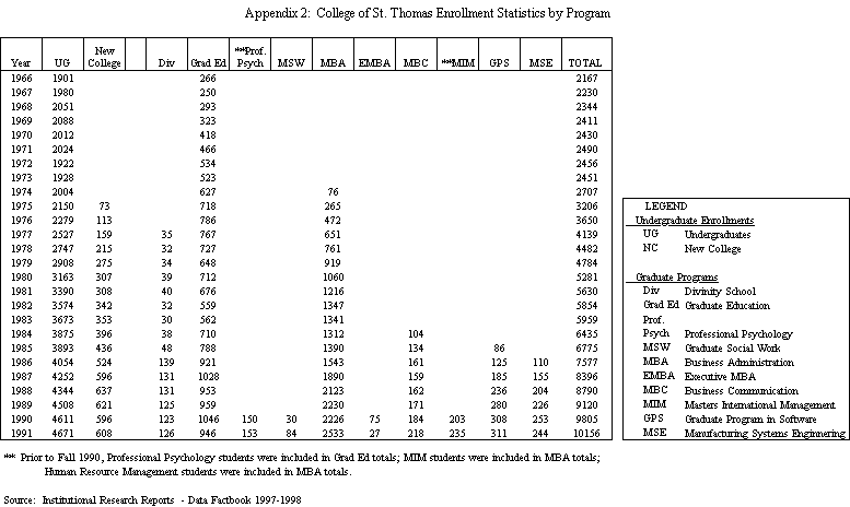 The University of St. Thomas developed Program Centers in response to the needs of the Twin Cities community. The following is a 1993 list of the centers in order of their founding year: The Management Center, 1957 This center provides noncredit management and