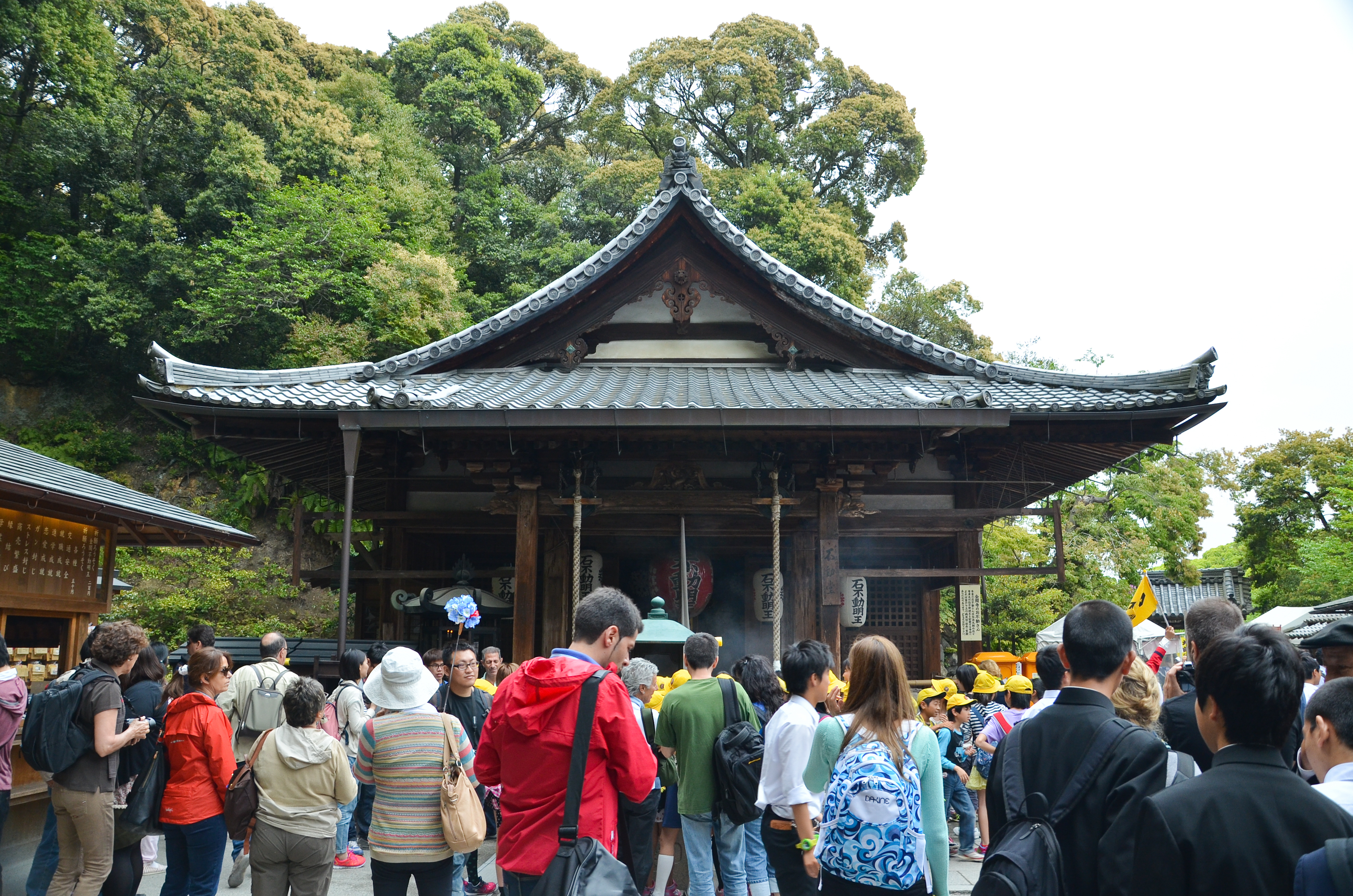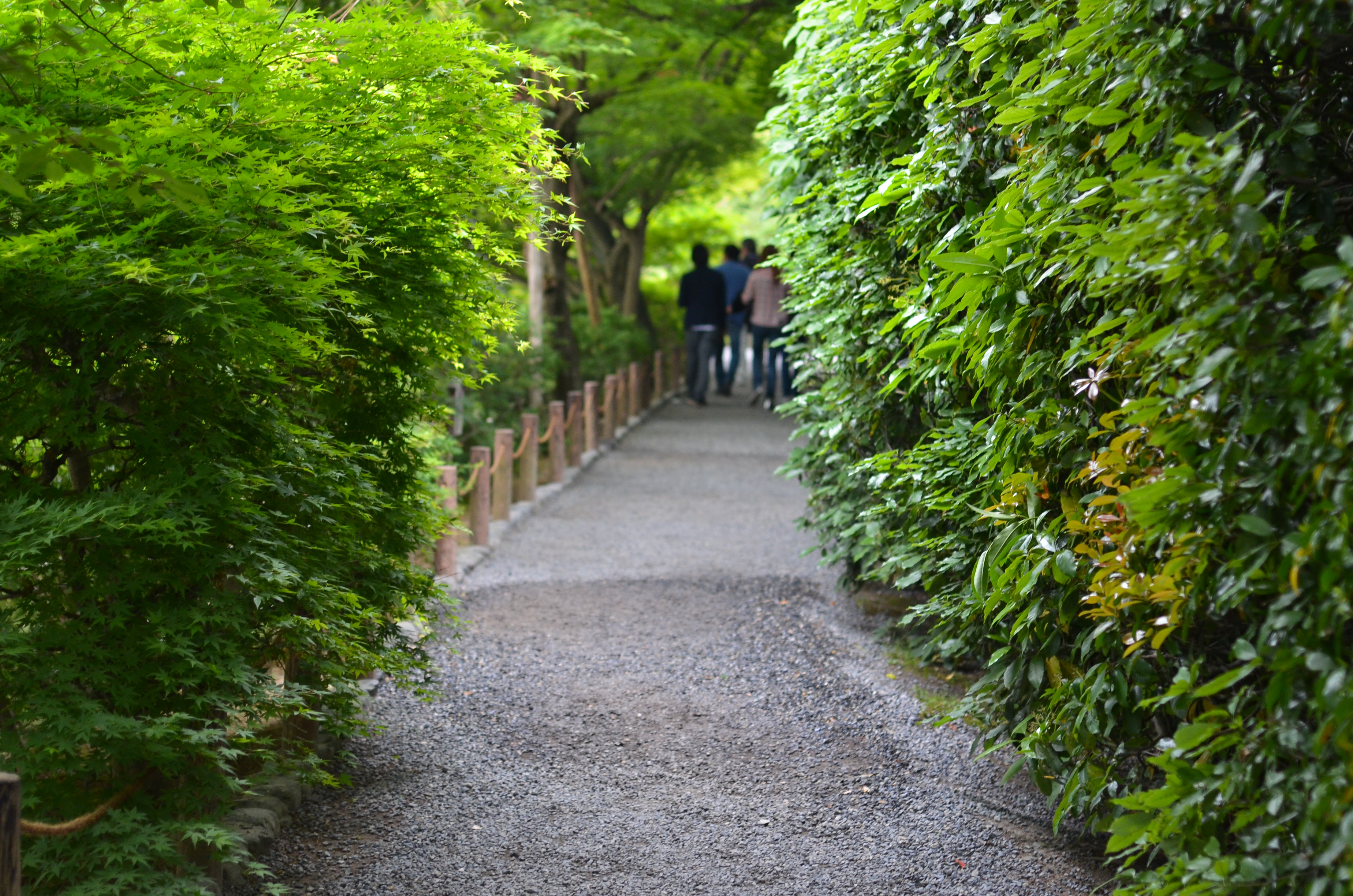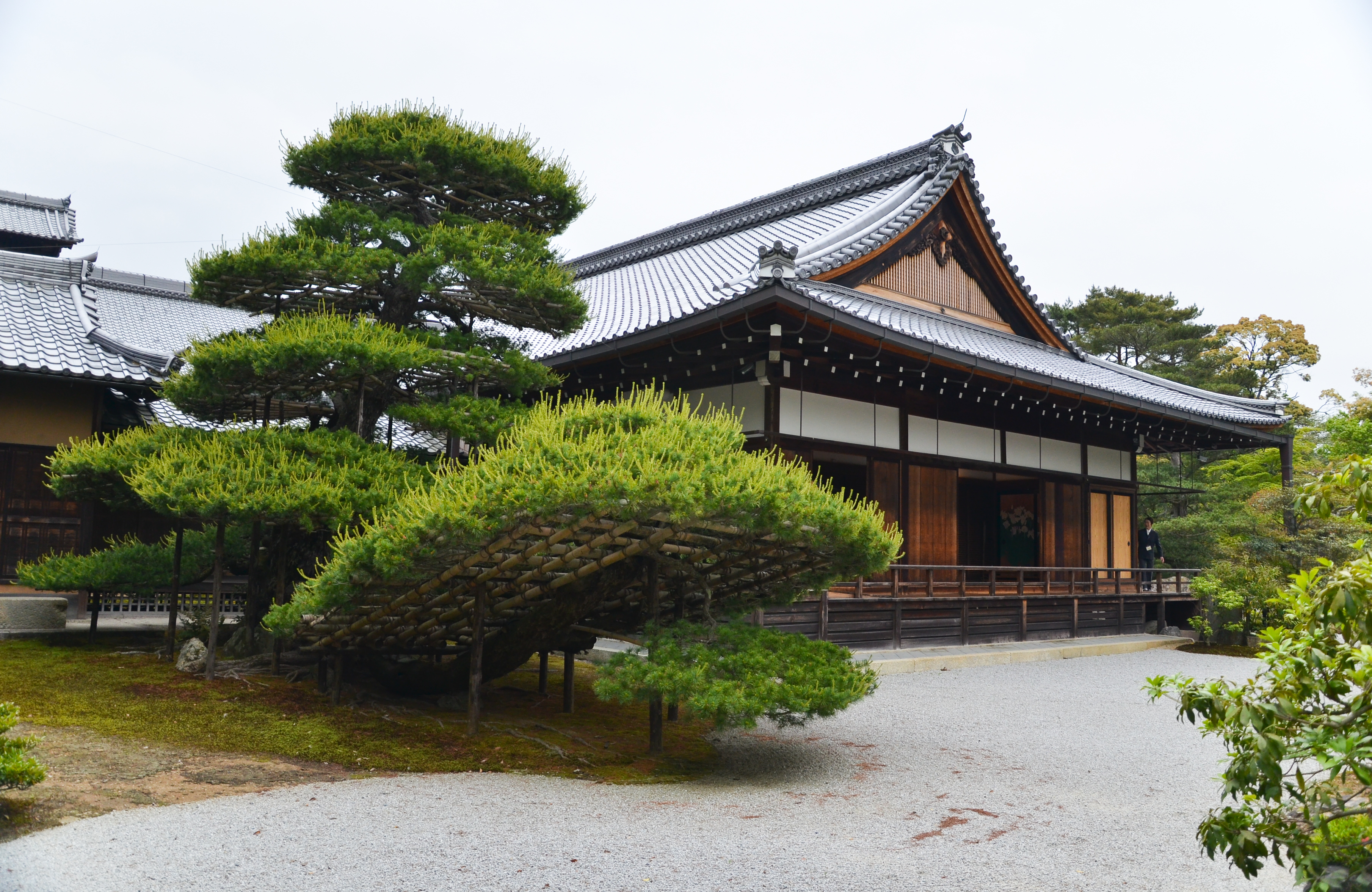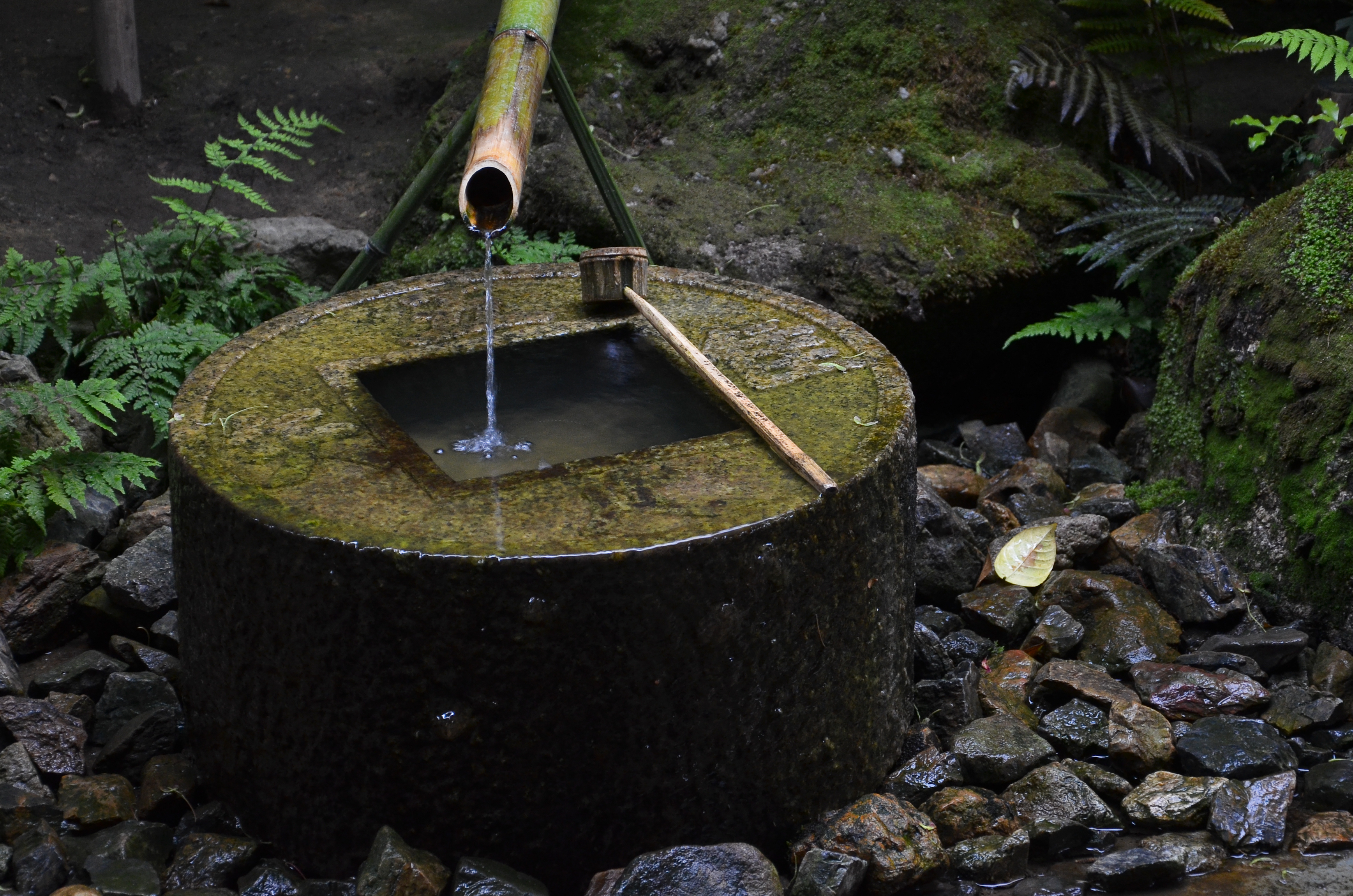 The temple itself was dark inside; the majority of light came from the long opening to the rock garden. The temple had a very long step where people could sit before the garden and contemplate its design. The light drizzle that was going on also helped add to the mood. An ideal place for spending time in solitude on a less-crowded day.